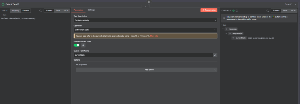 When paired with an AI Agent node, Date & Time data becomes extremely powerful.