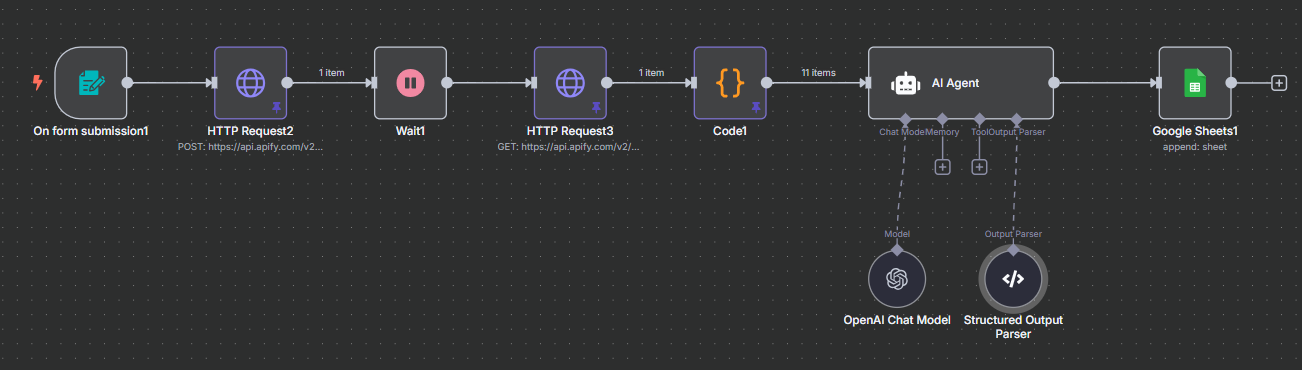 Note on Apify integration: This workflow was originally built using HTTP Request nodes to call Apify’s REST API directly — the approach that was standard before Apify released their native n8n community node. We cover both approaches below so you can choose the one that fits your setup.