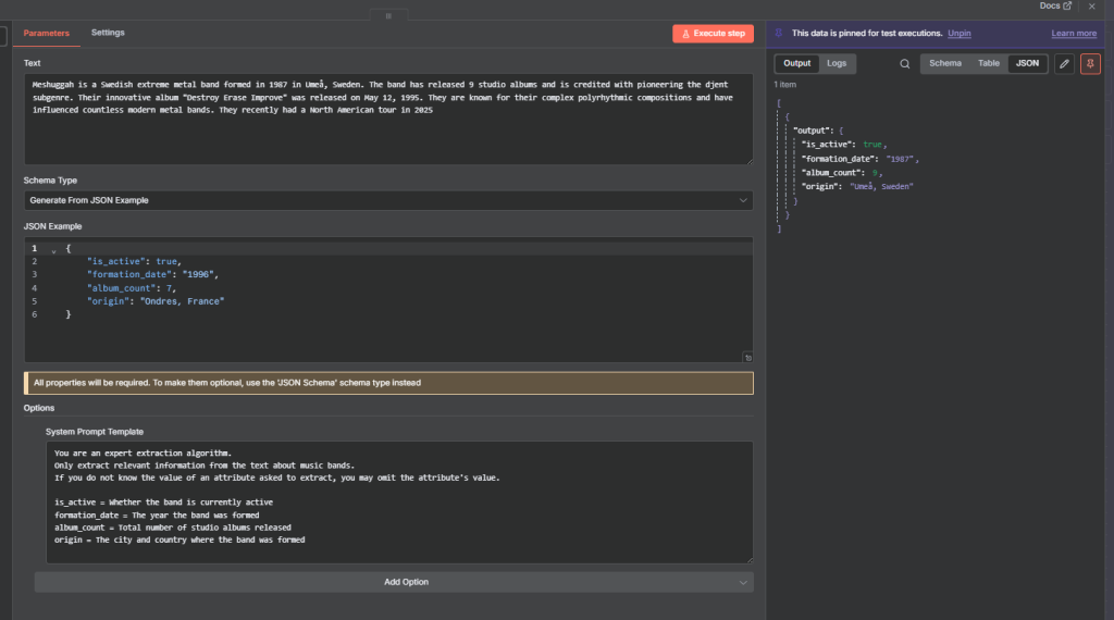 You can also use the Information Extractor node to generate structured data directly from a JSON example.
