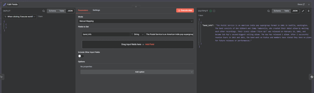 While it’s technically possible to use an AI Agent for this task, it isn’t necessary in this case. Since there’s no need for memory or tool-based reasoning, the Information Extractor node is sufficient on its own. It comes with a built-in JSON output parser and an integrated prompt system that automatically extracts key details , eliminating the need for additional AI components.