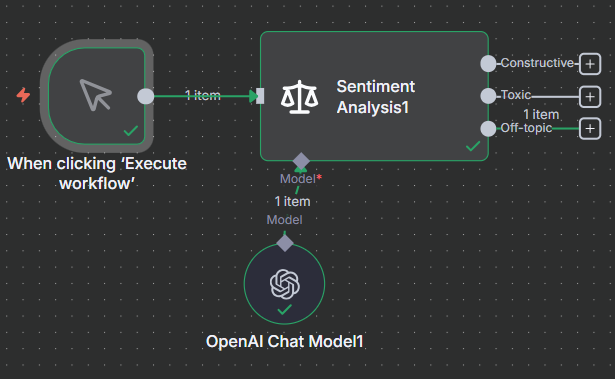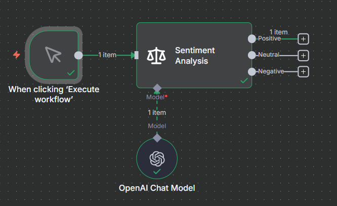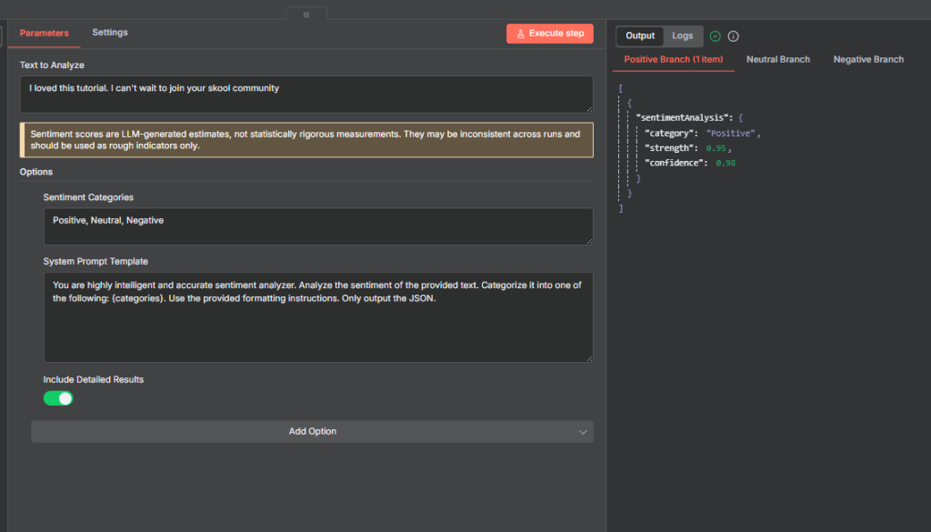 In n8n, the sentiment analysis node simplifies this process by leveraging AI models that classify input text into defined sentiment categories.