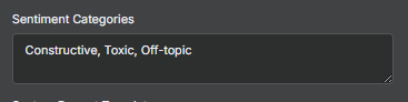 You can define your own sentiment categories by modifying the Sentiment Categories field.