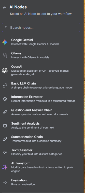Once you’re in your n8n workspace, there are two ways to locate the Sentiment Analysis node: