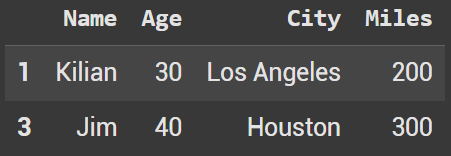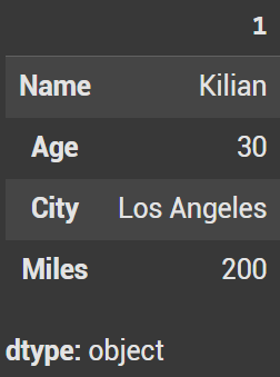 In our first example let’s look at grabbing rows that have index of Kilian.