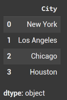 'City': ['New York', 'Los Angeles', 'Chicago', 'Houston'],