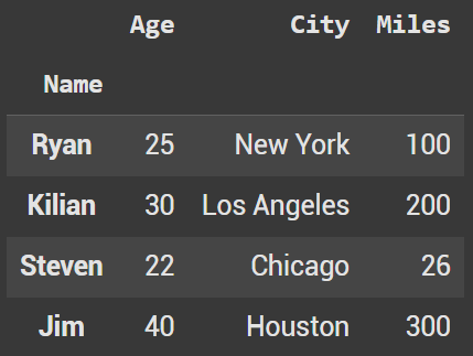 When you set an index, it replaces the integer values. In this example let’s look at setting the index Name.