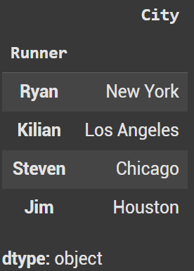 We can also rename an axis. Let’s change name into runner. We pass in a dictionary as a parameter.