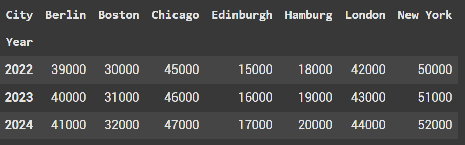 pivot_df = df.pivot(index='Year', columns='City', values='Runners')