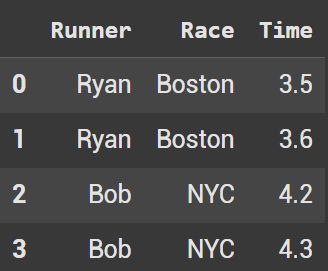 'Runner': ['Ryan', 'Ryan', 'Bob', 'Bob'],