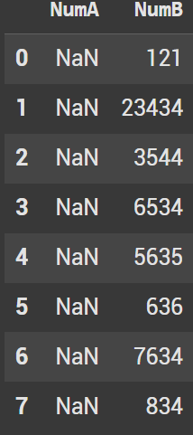 This now causes the NumA column to have all null values. NumB inherits the values in NumA. The old values in NumB do not show up in this new shift.