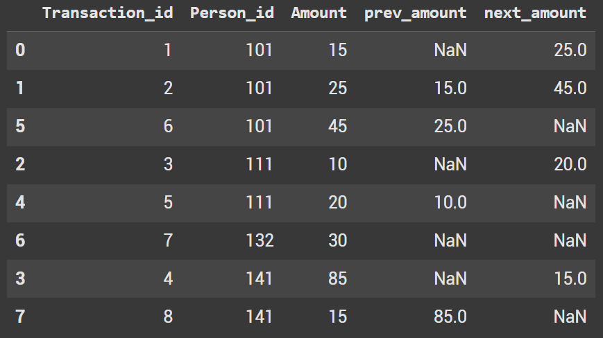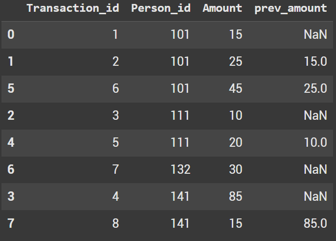 Next we will groupby the person_id and shift the amount by 1 row