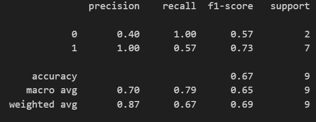 Let’s see how we did by passing in y_test and y_pred into the classification report.