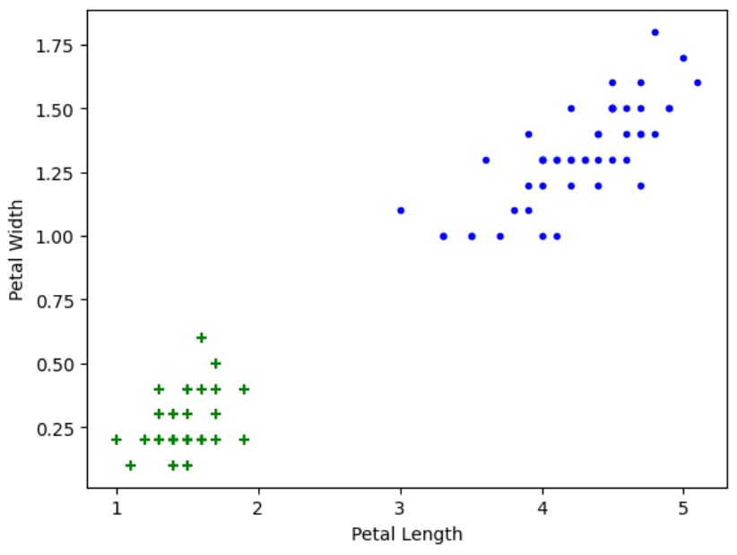The first plot to take a look at is petal length and petal wifth for df0 and df1